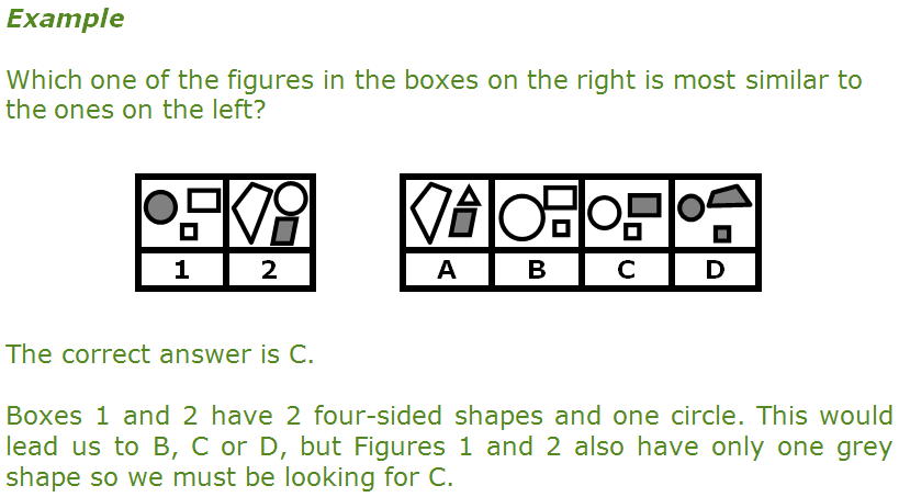 In each question that follows, the two shapes on the left have one or more features which make them similar to each other. You must find the figure on the right which is most similar to the ones on the left.